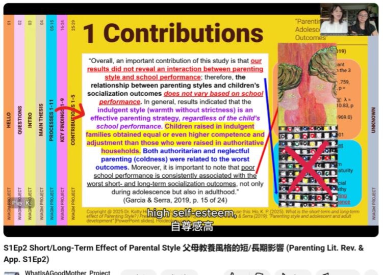 - Copyright @ 2025 Dr. Katty Ho at Hoideology.com | To cite this material, use this: Ho, K. P., & Chu, G. (2025b). What is the short-term and long-term effect of parenting style? Presentation of WhatIsAGoodMother_Project Article #2, Garcia & Serra (2019): “Parenting style and adolescent and adult development” (Parenting Literature Review & Applications, Season 1, Episode 2). [YouTube Video]. From Hoideology.com. https://youtu.be/klO8JkKnlGY?si=-g1YeK0sRrItG8nP