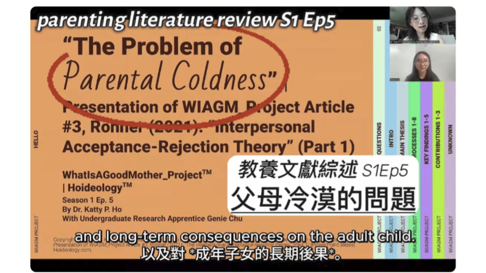 Copyright @ 2025 Dr. Katty Ho at Hoideology.com | To cite this material, use this: Ho, K. P. (2025). The problem of parental coldness | Presentation of WhatIsAGoodMother_Project Article #3, Rohner (2021): interpersonal acceptance-rejection theory (Part 1) (Parenting Literature Review & Applications, Season 1, Episode 5). [YouTube video]. https://hoideology.com/