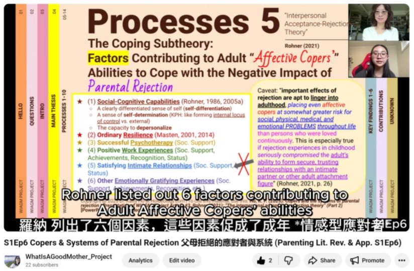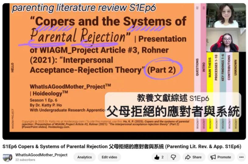 Copyright @ 2025 Dr. Katty Ho at Hoideology.com | To cite this material, use this: Ho, K. P. (2025). Copers and systems of parental rejection | Presentation of WhatIsAGoodMother_Project Article #3, Rohner (2021): interpersonal acceptance-rejection theory, Part 2 (Parenting Literature Review & Applications, Season 1, Episode 6). [YouTube video]. From Hoideology.com. https://www.youtube.com/watch?v=SZ8QJV8knMA&t=31s
