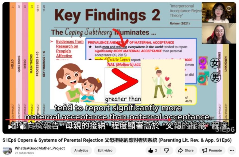 - 20:57 Key Findings 2: Prevalence and Effect of Maternal Acceptance 母親接納的普遍性與影響