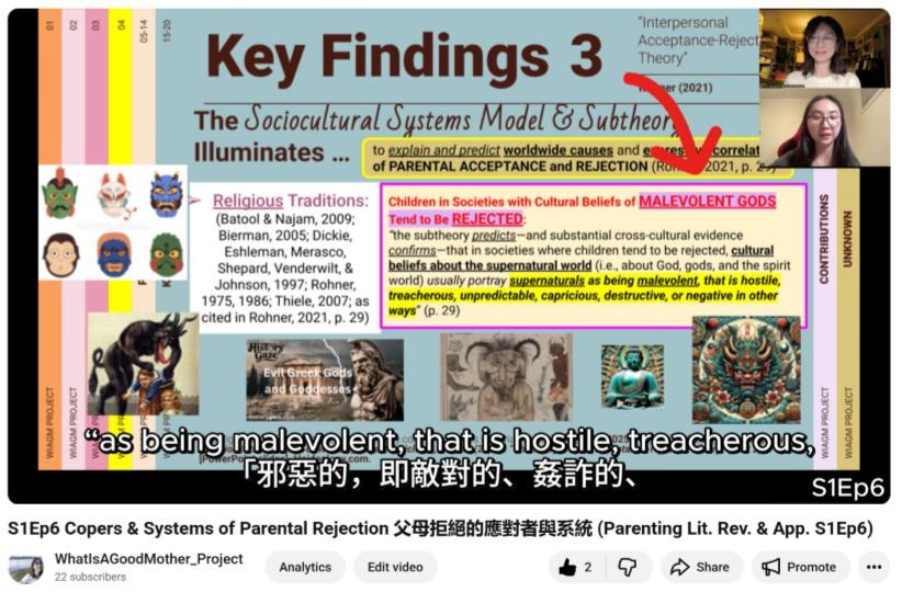 - 21:50 Key Findings 3: Believing in Malevolent Gods and Parental Rejection 信仰邪惡的神靈和父母的遺棄